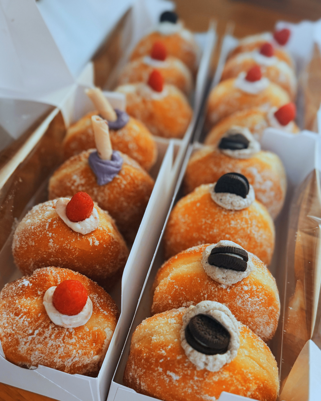 Enjoy golden croffels and fluffy brioche donuts in festive flavors—each bite pure holiday joy.