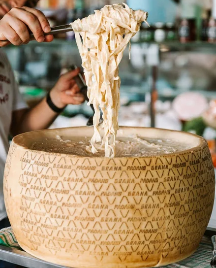 Enjoy cheesy comfort at our Cheese Wheel Pasta Hut! Indulge in warm pasta swirled in a giant wheel of aged Italian cheese for a rich, melty, and cozy treat.
